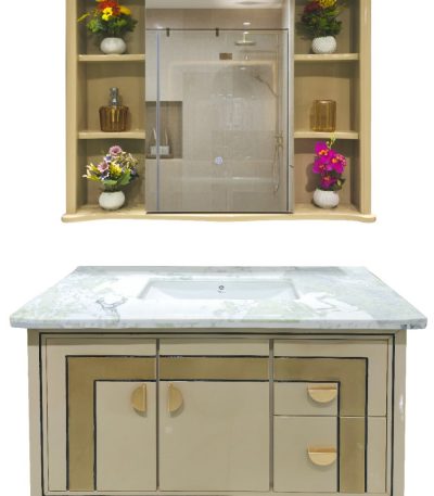 ১০০% কাঠের তৈরি, ডাবল কোটেট লেকার, Water Proof, ৩০ বছরের গ্যারান্টি। স্টাইলিশ ডাবল-মিরর, ফুল দিয়ে সাজানো শেলফ, এবং আধুনিক ডিজাইনের সিঙ্ক।
